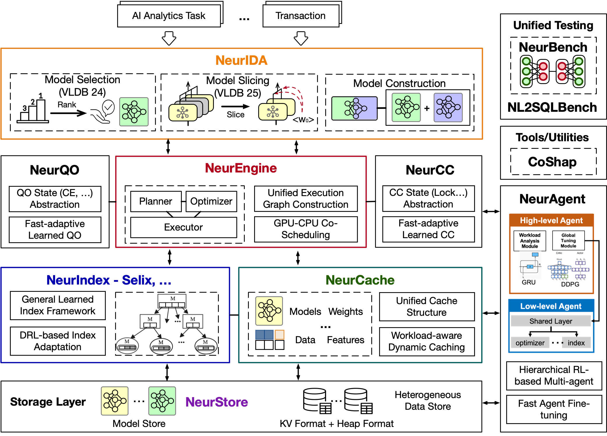 - NeurAgent - a hierarchical reinforcement learning agent that performs global workload analysis and system tuning across database components.